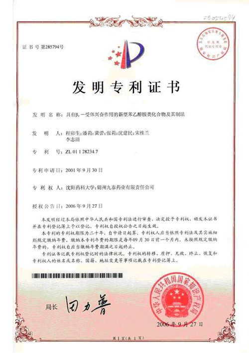 該產(chǎn)品正處于Ⅲ b臨床研究階段,已獲七項專利證書。 錦州九泰藥業(yè)與沈陽藥科大學(xué)合作開發(fā)的國家一類新藥鹽酸川丁...