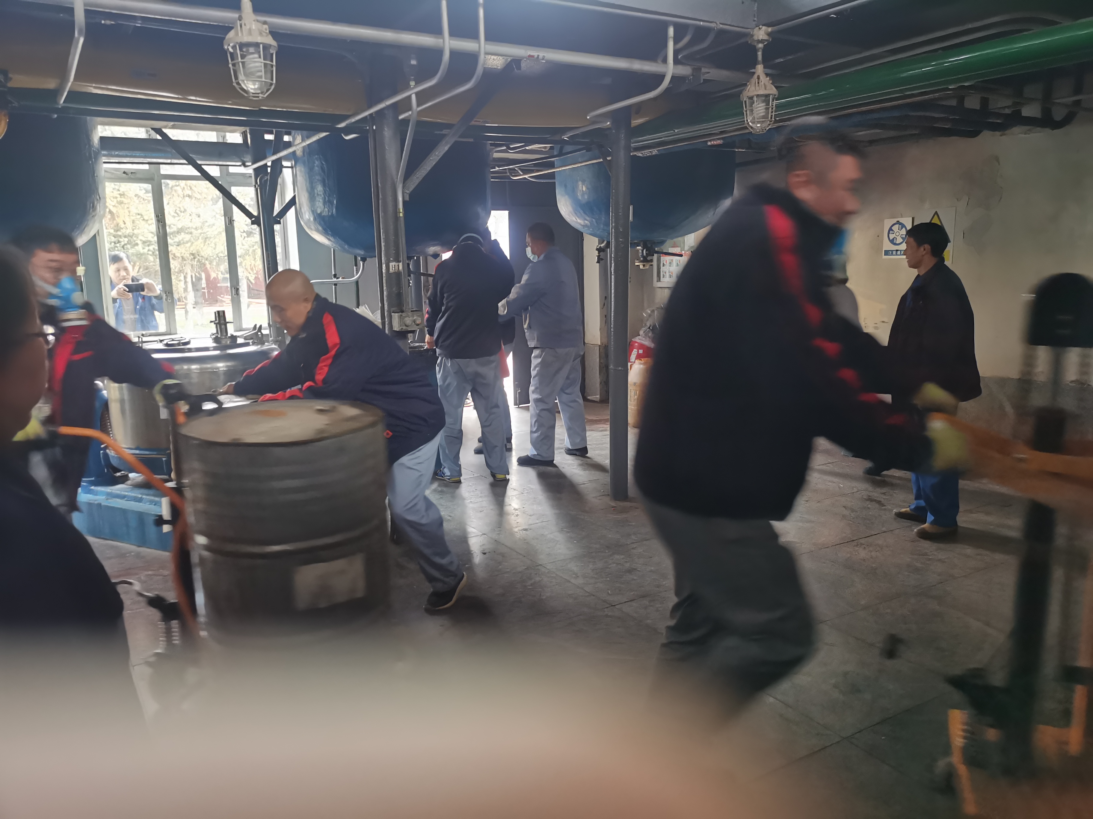 演練模擬原料車間合成一室發(fā)生火災爆炸,車間立即啟動應急預案,進行實際演練。